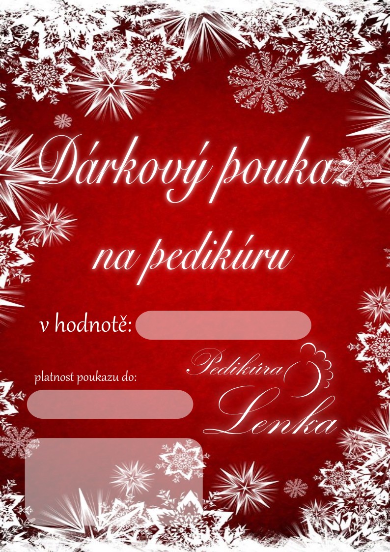 Darujte svým blízkým pocit luxusu a péče s dárkovým poukazem na pedikúru! Tento poukaz zahrnuje kompletní proceduru, která zahrnuje relaxační lázeň pro nohy, profesionální úpravu nehtů, odstranění ztvrdlé kůže, hydrataci a masáž chodidel. Je ideálním dárkem k narozeninám, výročí nebo jen tak pro radost – pro chvíli klidu a odpočinku, která zanechá nohy svěží, hebké a krásné. Pedikúra je vhodná jak pro ženy, tak pro muže, a přizpůsobím ji individuálním potřebám klienta. Dopřejte vašim blízkým čas pro sebe a jedinečný zážitek s vánočním dárkovým poukazem!